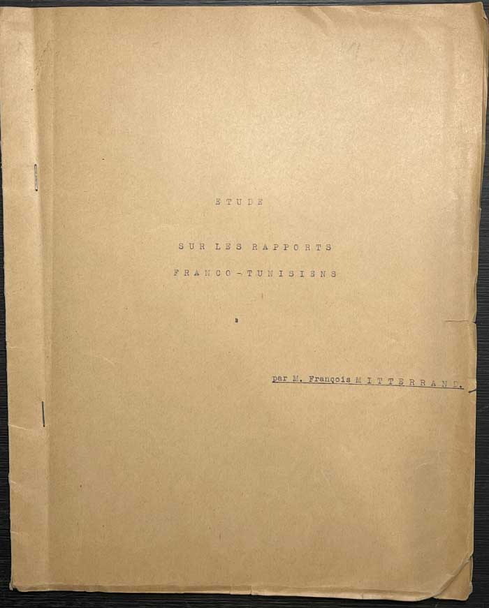Le rapport de Mitterrand est envoyé à quelques personnalités politiques et journalistes parisiens un mois plus tard. Ce texte dactylographié de cinquante-sept pages, intitulé « Étude sur les rapports franco-tunisiens », est consultable dans les archives de Vincent Auriol6. Ce document inédit est capital si l’on veut comprendre la pensée coloniale de François Mitterrand.