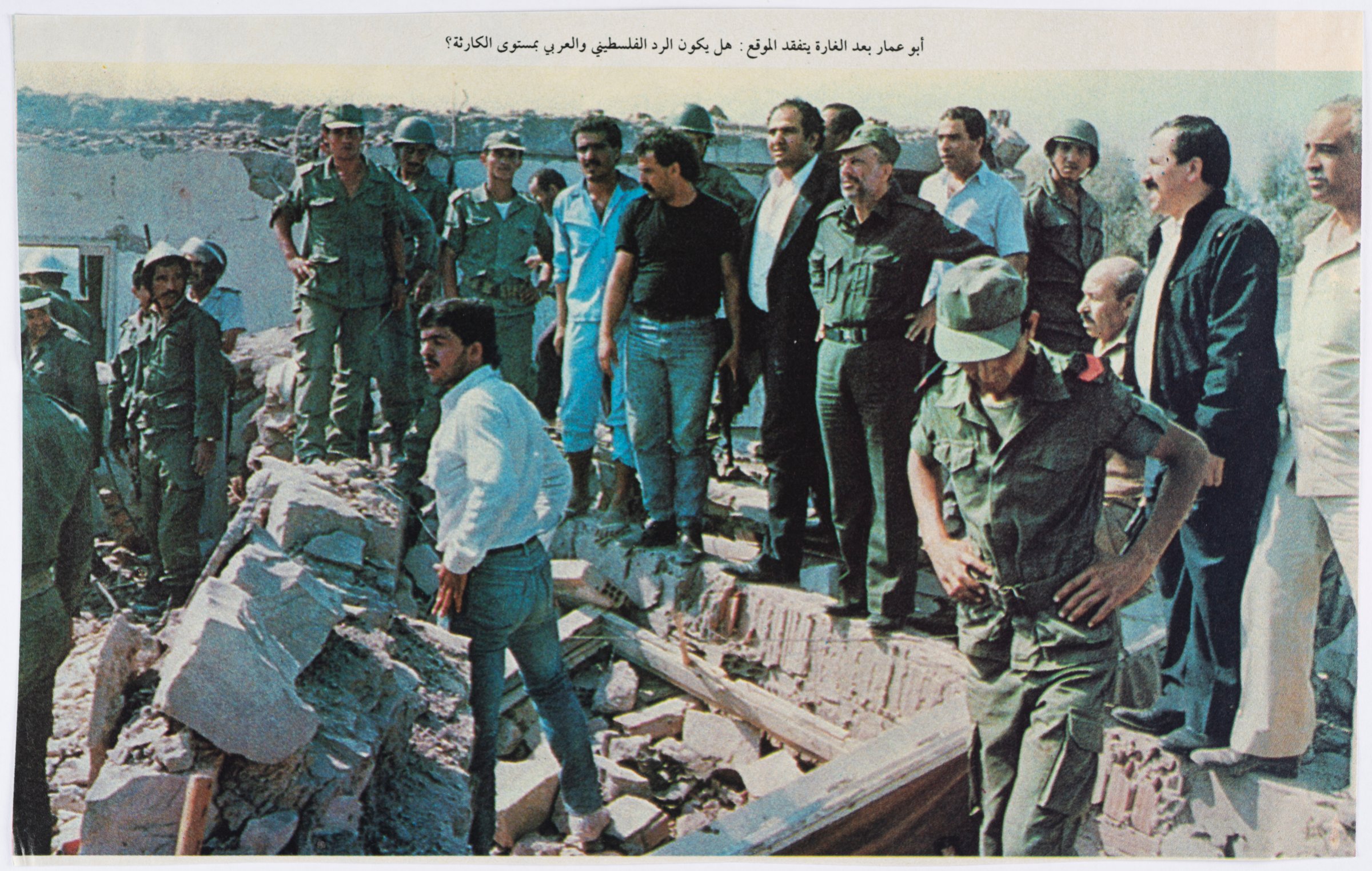 Les pilotes avaient cru avoir atteint leur objectif principal : tuer Arafat et enterrer une fois pour toutes le commandement de la révolution palestinienne. À Tel-Aviv, des officiers de l’armée de l’air commandés par Amos Lapidoth et des agents du Mossad dirigé par Nahum Admoni se préparent à sabrer le champagne pour célébrer le massacre quand, soudain, Abou Ammar apparaît à l’écran, debout sur les décombres de sa maison et promettant à Israël une dure riposte. Dans une formule claire et concise, Tahar Al-Cheikh a publié un communiqué : « Arafat a échappé à une tentative d’attentat sioniste. »