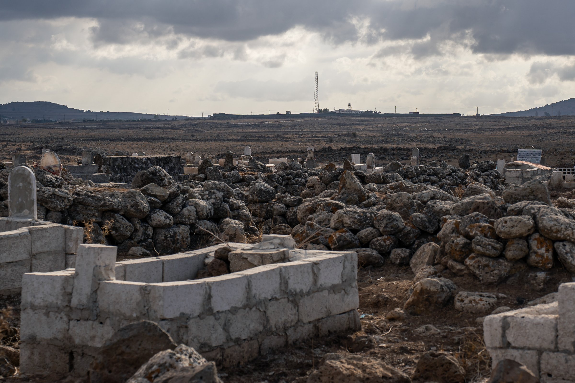 Sobre la planicie desprovista de vegetación de Quneitra sopla un viento frío. Después de la última barrera de las fuerzas del Ministerio de Interior sirio, se despliega la zona desmilitarizada del Golán. En este octubre de 2025, esta región del sur de Siria revela sus paisajes, compuestos por el negro de las piedras volcánicas y el ocre de la hierba quemada por el sol. La atmósfera es calma y la vida parece tranquila. Sin embargo, aquí y allá, los montículos de piedras levantados en el medio de la ruta generan intriga. Son uno de los índices dejados por el paso de los soldados israelíes. Barreras móviles con las cuales el ejército controla a una población de facto bajo ocupación.