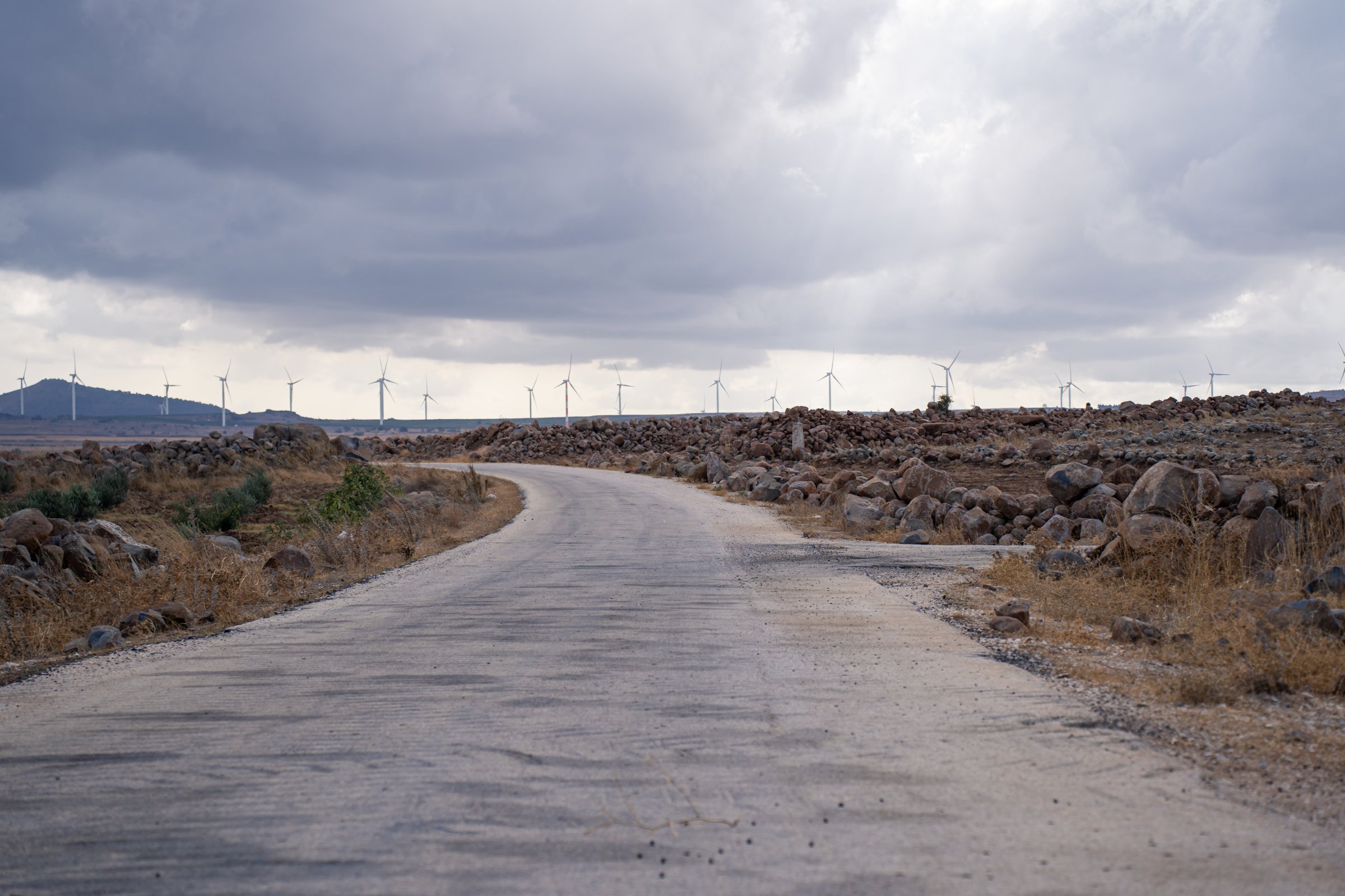 Cette bande, les hommes du village d’Al-Rafid, à quelques kilomètres au sud de Hamidiya, en ont également entendu parler. Ici, les soldats israéliens passent presque chaque nuit. Ils arrivent en convoi, encerclent les maisons, séparent hommes et femmes, interrogent les premiers, parfois sous la menace. Omar Ismaël, le patriarche du village, raconte que les questions sont toujours les mêmes : « Où sont les armes ? Et les membres du Hezbollah ? » Les habitants ont reçu l’ordre des soldats israéliens de ne plus accéder à leurs terres jouxtant la frontière avec le Golan occupé. Une grande partie des champs est désormais inaccessible. Zayed, un paysan du village, estime que 200 familles sont concernées, soit près de 1 500 personnes. Depuis la route qui mène à Al-Rafid, on aperçoit les pales des éoliennes israéliennes qui tournent dans la partie annexée du Golan.