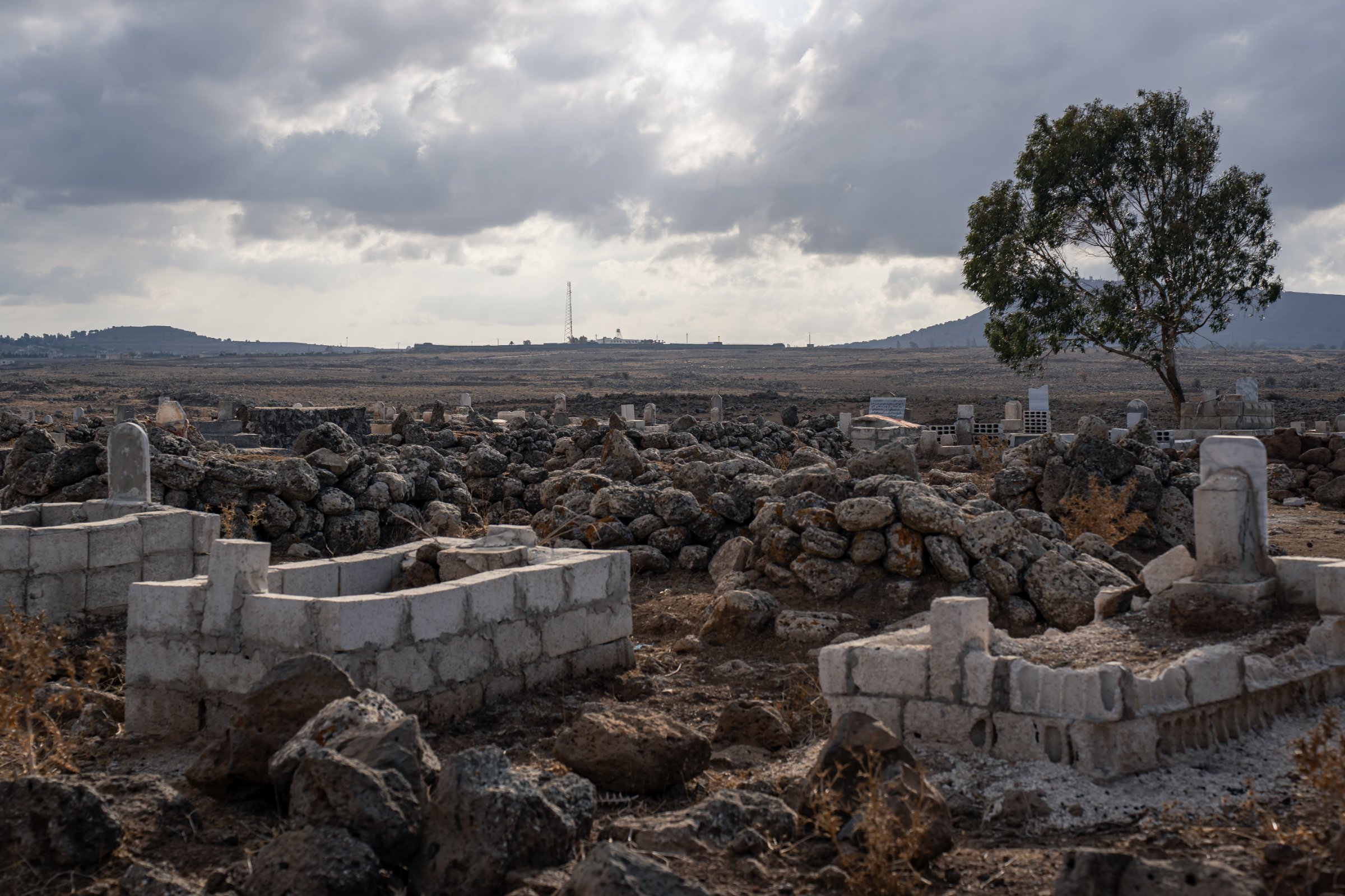 Un vent frais souffle sur la plaine pelée de Kuneitra. Après le dernier barrage des forces du ministère de l’intérieur syrien, la zone démilitarisée du Golan se déploie. En ce mois d’octobre 2025, cette région du sud de la Syrie dévoile ses paysages faits du noir des pierres volcaniques et de l’ocre des herbes brûlées par le soleil. L’atmosphère est calme et la vie paraît tranquille. Pourtant çà et là, les monticules de pierres dressés au milieu de la route intriguent. Ils sont l’un des indices laissés par le passage des soldats israéliens. Des barrages volants où l’armée contrôle une population de facto sous occupation.
