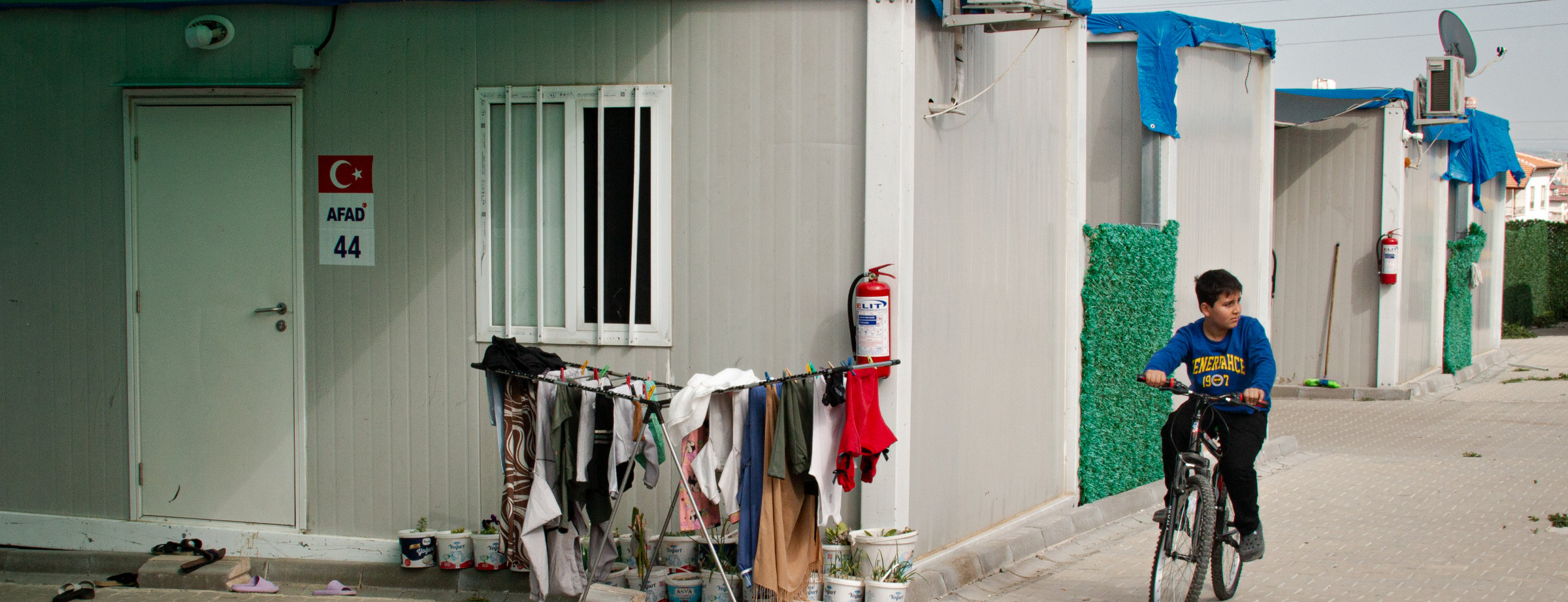 Hatay, la région de Turquie la plus touchée par le séisme survenu le 6 février 2023, peine à se reconstruire. Entre les décombres, les villes en préfabriqués construits en urgence accueillent encore des milliers de personnes en attente de relogement. Reportage.
